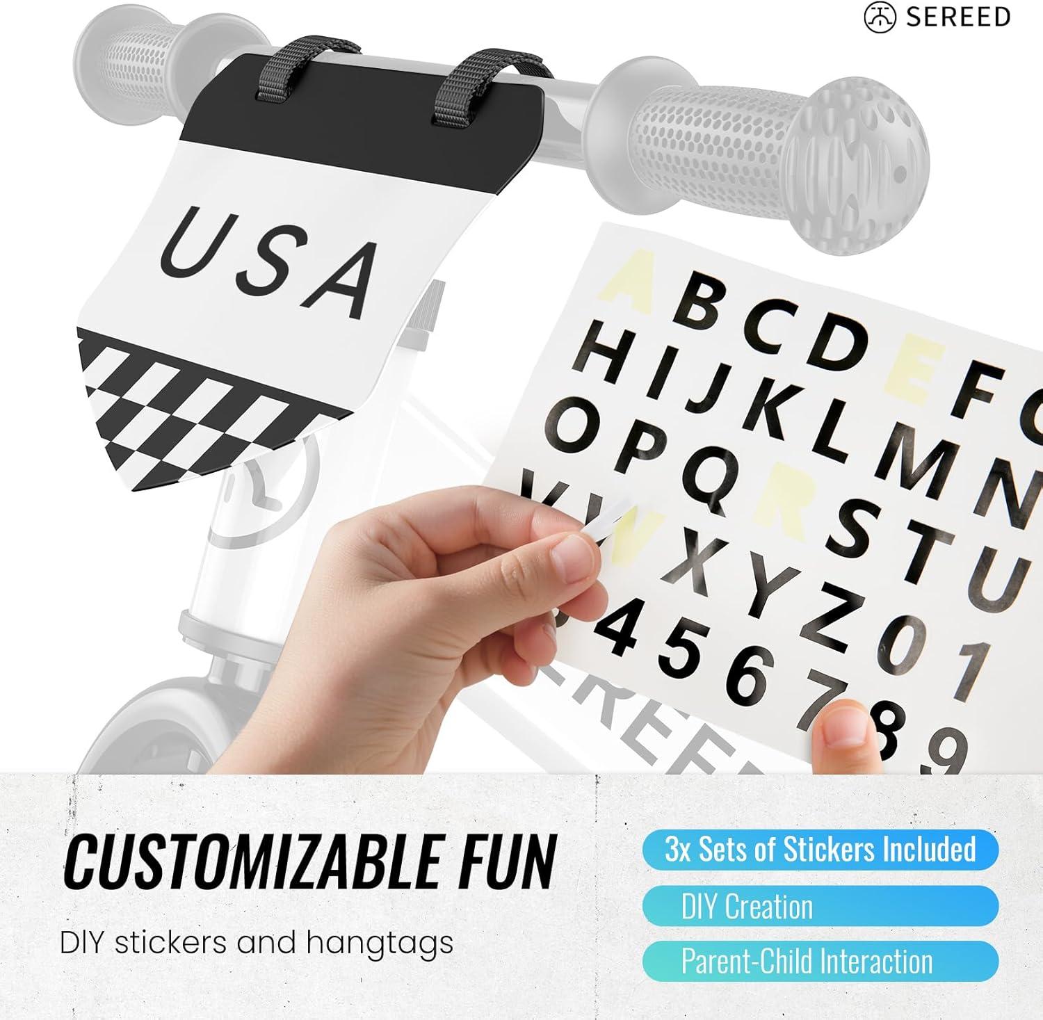 Be the first to review “SEREED Toddler Balance Bike 2 Year Old, No Pedal Kids Bicycle Toys for 2-5 Years Old, Tool-Free Adjustment, Customize Plate with Stickers, Gift for 2-3 Boys Girls (White Lighting)(White)”