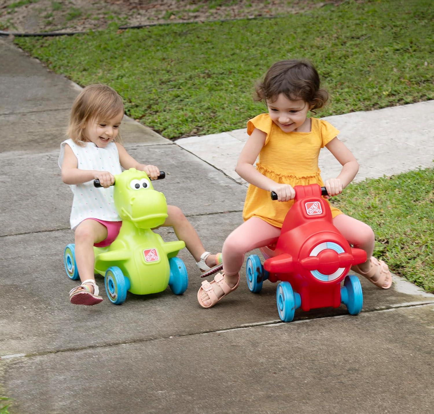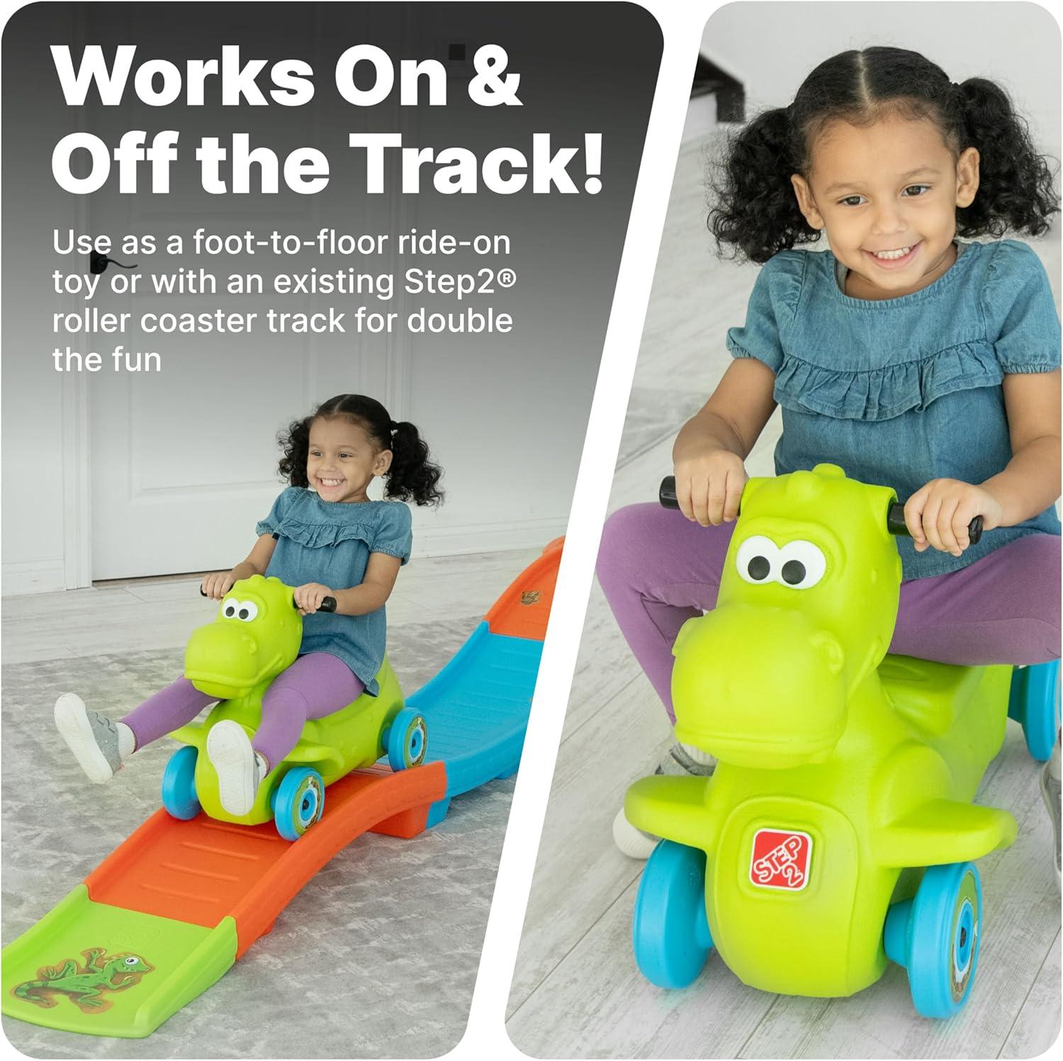 Use less words. Introducing the Step2 Foot-to-Floor Ride-On for Kids, the ultimate ride-on push car designed to ignite hours of excitement for toddlers aged 2-5 years old. This sleek ride pairs perfectly with our Up and Down Roller Coaster, offering a seamless transition from one thrilling adventure to the next, whether indoors or outdoors. With its foot-powered design, little ones can easily hop aboard and embark on thrilling journeys, fostering independence and confidence as they cruise around. Supporting up to 50 lbs, it's sturdy enough for endless playtime fun. But it's not just about fun – this ride-on promotes skill-building too. Encouraging the development of hand-eye coordination, balance, and gross motor skills, it's a fantastic addition to any child's playtime arsenal. Comfort is key, which is why our Sky Rider boasts thoughtful design elements such as footrests, a high back, and a built-in handlebar for a cozy and secure ride. Plus, it's a breeze to assemble, so the fun can start in no time. Want to take the excitement up a notch? Double the fun by adding another car to your existing roller coaster track, creating an immersive and interactive play experience that will have kids begging for more. Crafted with unparalleled durability in mind, our ride-on is constructed from double-walled plastic, ensuring it can withstand the rigors of playtime without chipping, fading, cracking, or peeling. And when it's time for cleanup, simply wipe it down for effortless maintenance. Get ready to embark on thrilling adventures with the Step2 Sky Rider Foot-to-Floor Ride-On – where fun knows no bounds, and imaginations run wild.